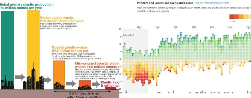 A sinistra esempio di infografica; a destra esempio di data visualization